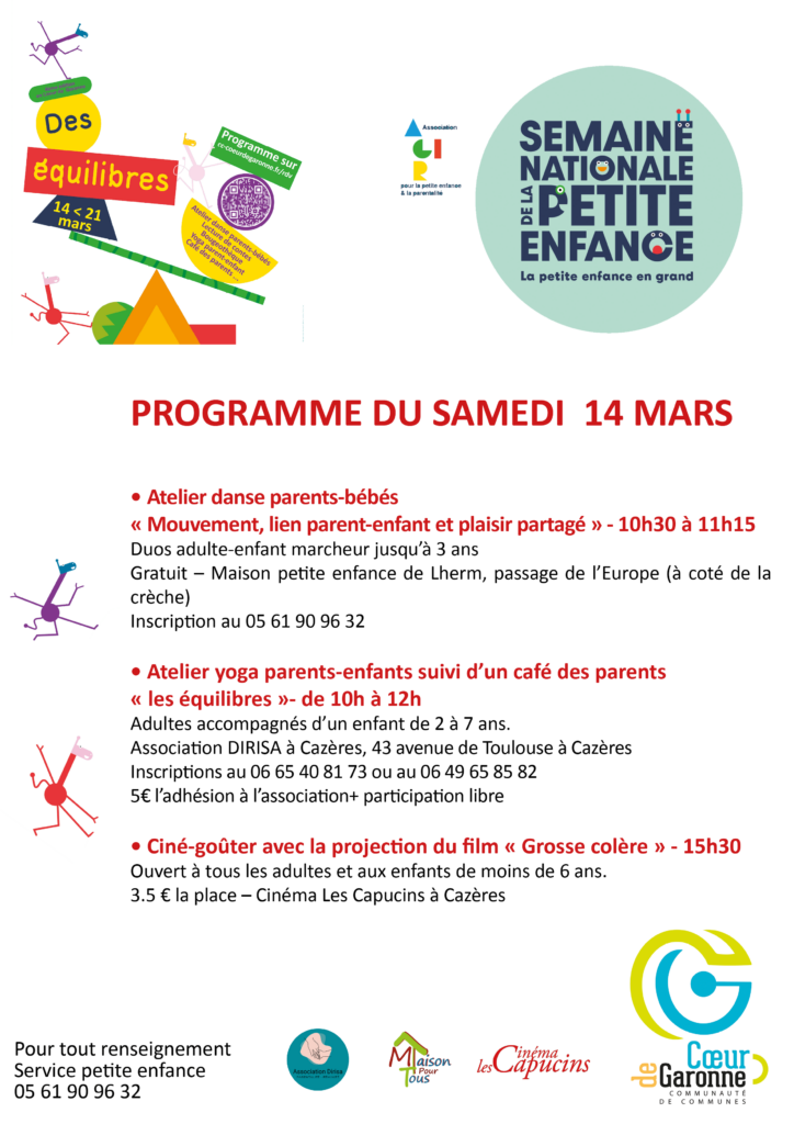 Du 14 au 21 mars, la communauté de communes Cœur de Garonne participe à la semaine petite enfance. Cette édition met à l’honneur le thème des équilibres : équilibre entre temps familial et collectif, entre jeu et apprentissage, entre mouvement et repos, entre enfants et adultes.